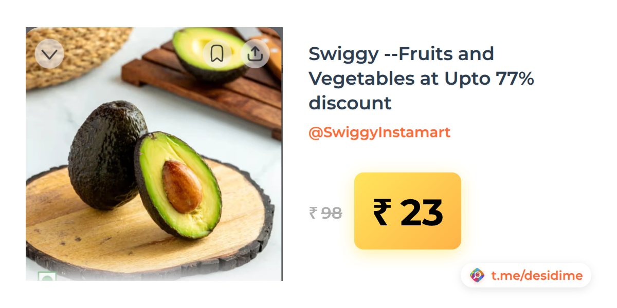 77% off on - Swiggy --Fruits and Vegetables at Upto 77% discount - Rs. 23