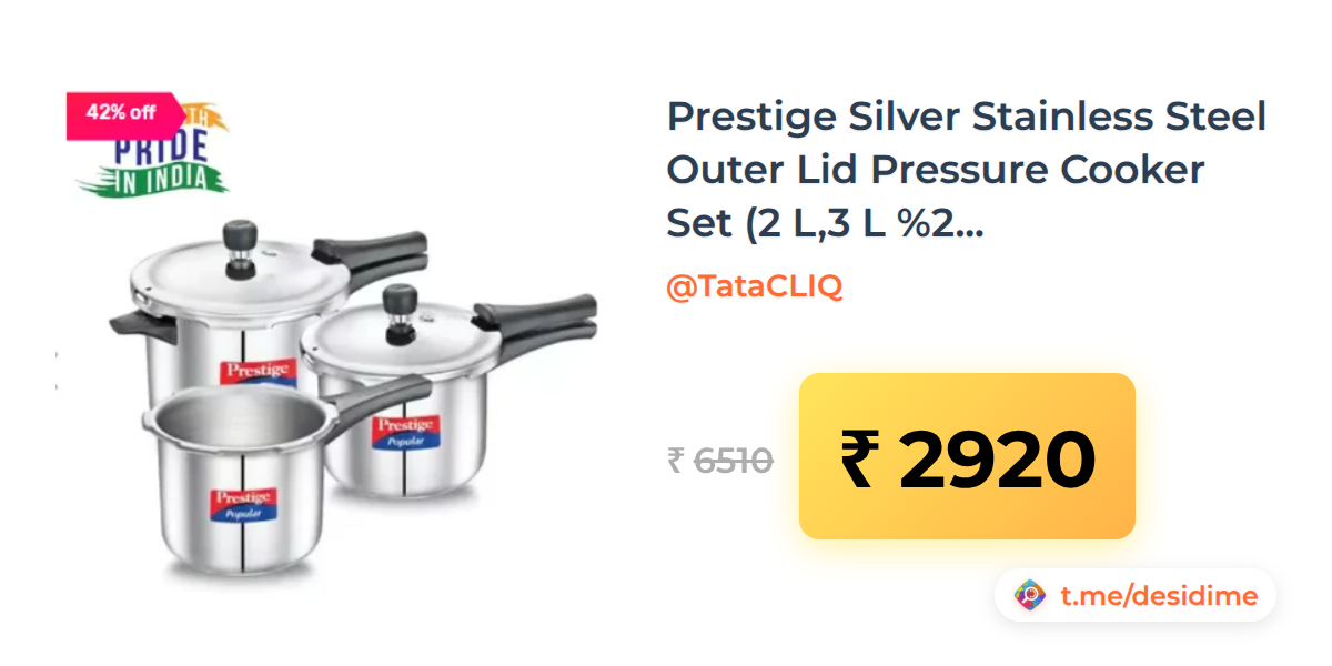 55% off on - Prestige Silver Stainless Steel Outer Lid Pressure Cooker Set (2 L,3 L & 5 L) - Rs. 2920