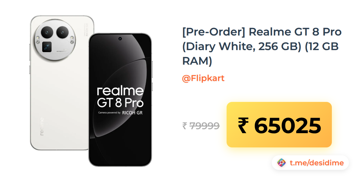 19% off on - [Pre-Order] Realme GT 8 Pro (Diary White, 256 GB) (12 GB RAM) - Rs. 65025