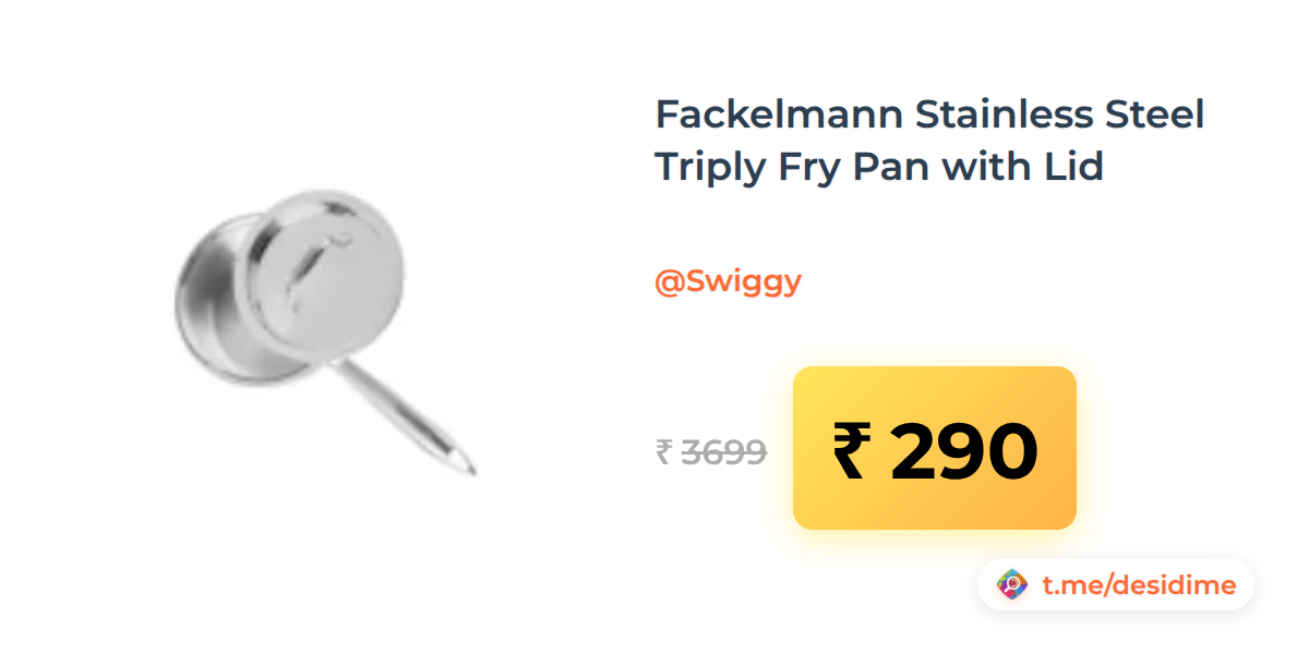 92% off on - Fackelmann Stainless Steel Triply Fry Pan with Lid - Rs. 290