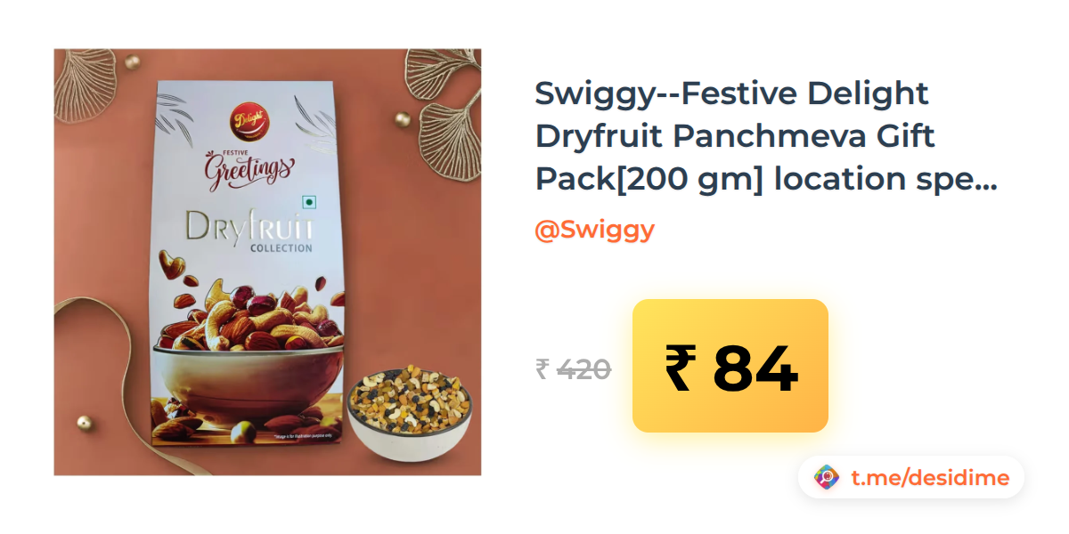 80% off on - Swiggy--Festive Delight Dryfruit Panchmeva Gift Pack[200 gm] location specific - Rs. 84