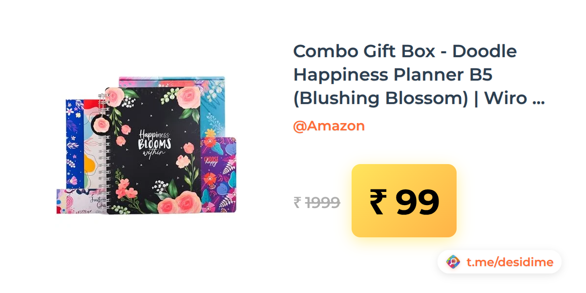 95% off on - Combo Gift Box - Doodle Happiness Planner B5 (Blushing Blossom) | Wiro Bound Undated Planner with 268 Pages, To-Do Lists, Activity Pages, Tear Away Note & Quote Cards | 64-Page Pocket Book, 250+ Stickers etc - Rs. 99