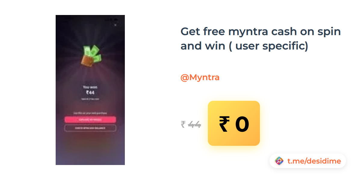 🌡605° - Get free myntra cash on spin and win ( user specific)