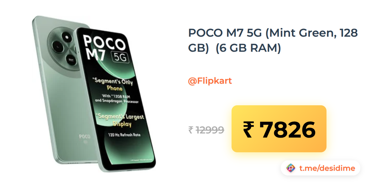 40% off on - POCO M7 5G (Mint Green, 128 GB)  (6 GB RAM) - Rs. 7826