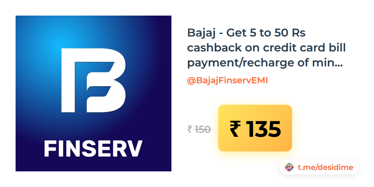 10% off on - Bajaj - Get 5 to 50 Rs cashback on credit card bill payment/recharge of min 50 Rs (2pm to 5pm) (3 times) - Rs. 135