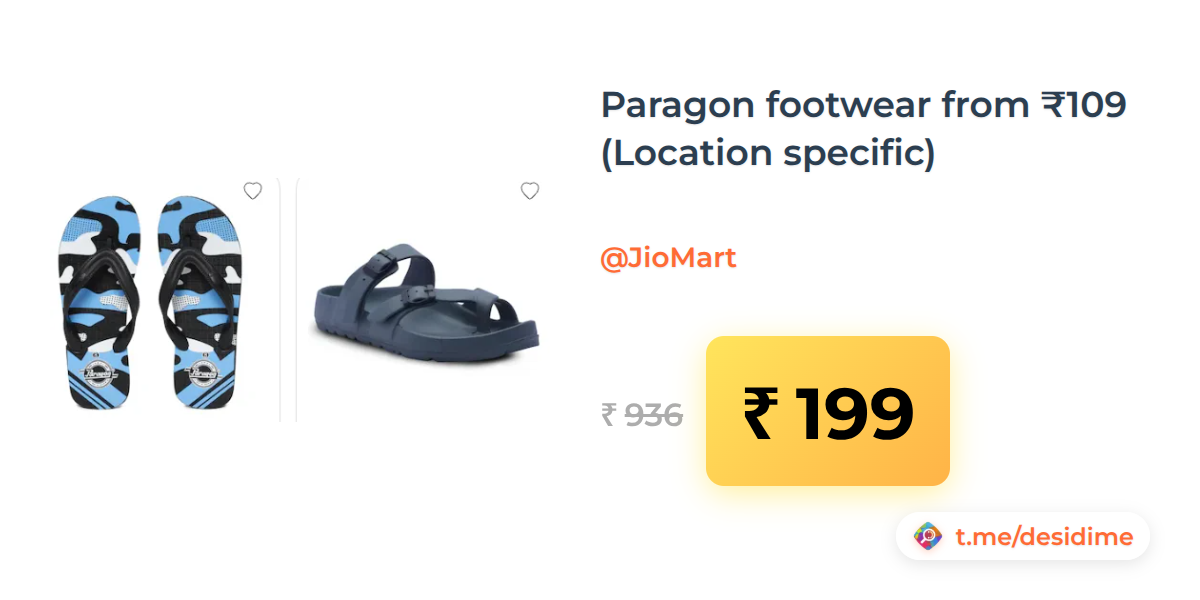 79% off on - Paragon footwear from ₹109 (Location specific) - Rs. 199