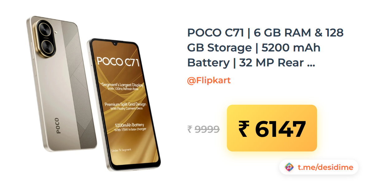 39% off on - POCO C71 | 6 GB RAM & 128 GB Storage | 5200 mAh Battery | 32 MP Rear Camera | 6.88" Display | Power Black - Rs. 6147
