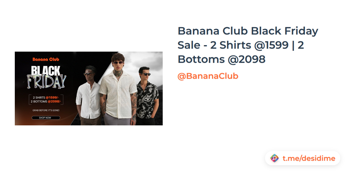 Banana Club Black Friday Sale - 2 Shirts @1599 | 2 Bottoms @2098
