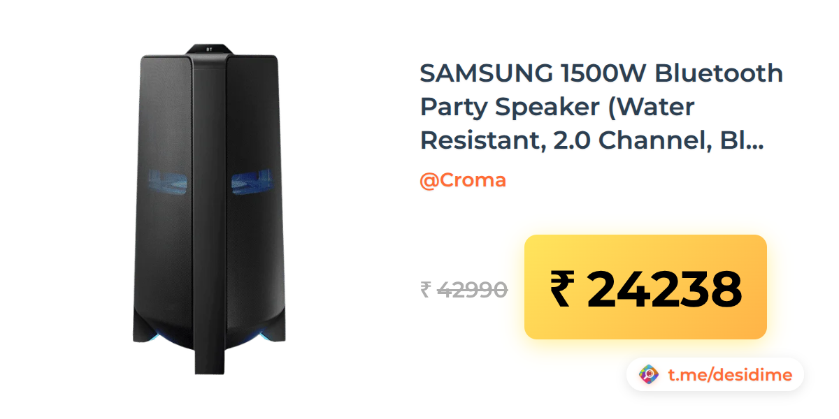 44% off on - SAMSUNG 1500W Bluetooth Party Speaker (Water Resistant, 2.0 Channel, Black) - Rs. 24238