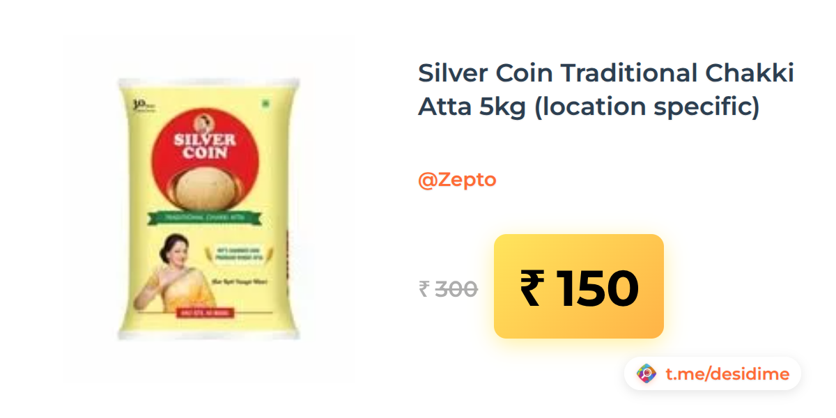 50% off on - Silver Coin Traditional Chakki Atta 5kg (location specific) - Rs. 150