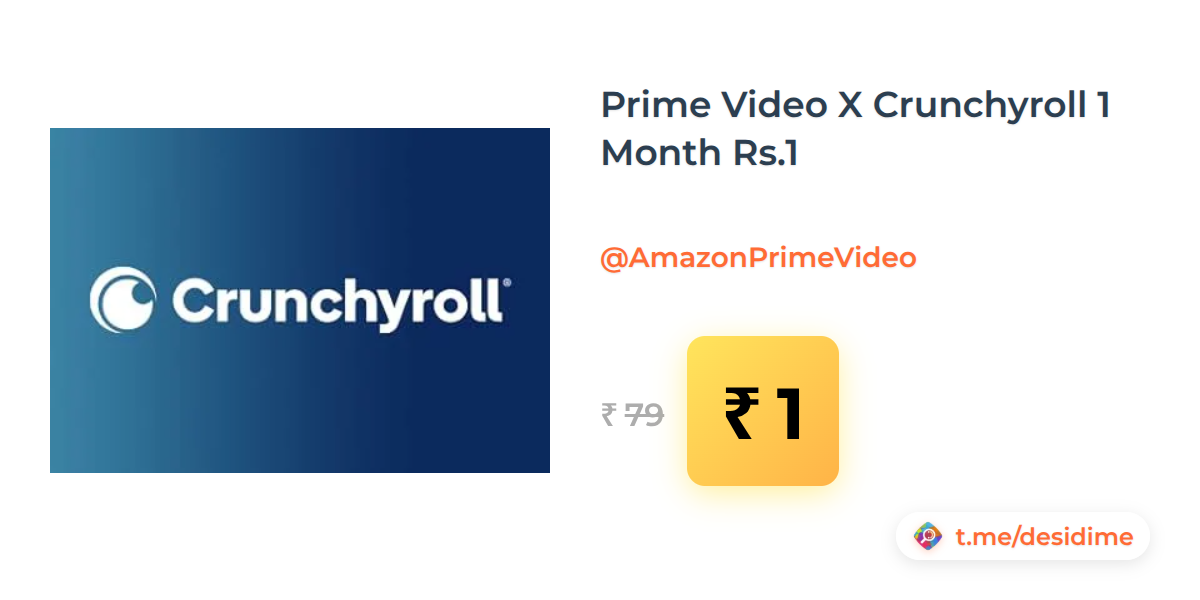 99% off on - Prime Video X Crunchyroll 1 Month Rs.1 - Rs. 1