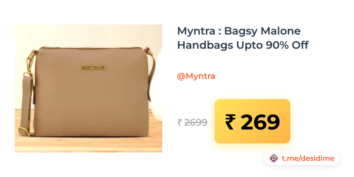 90% off on - Myntra : Bagsy Malone Handbags Upto 90% Off - Rs. 269