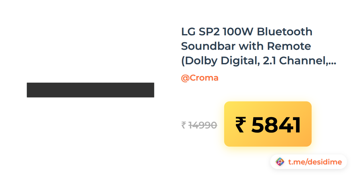 61% off on - LG SP2 100W Bluetooth Soundbar with Remote (Dolby Digital, 2.1 Channel, Dark Gray) - Rs. 5841
