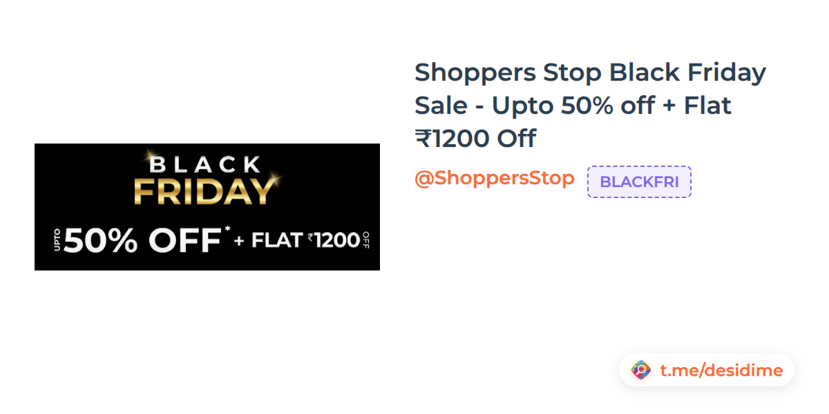 Shoppers Stop Black Friday Sale - Upto 50% off + Flat βΉ1200 Off