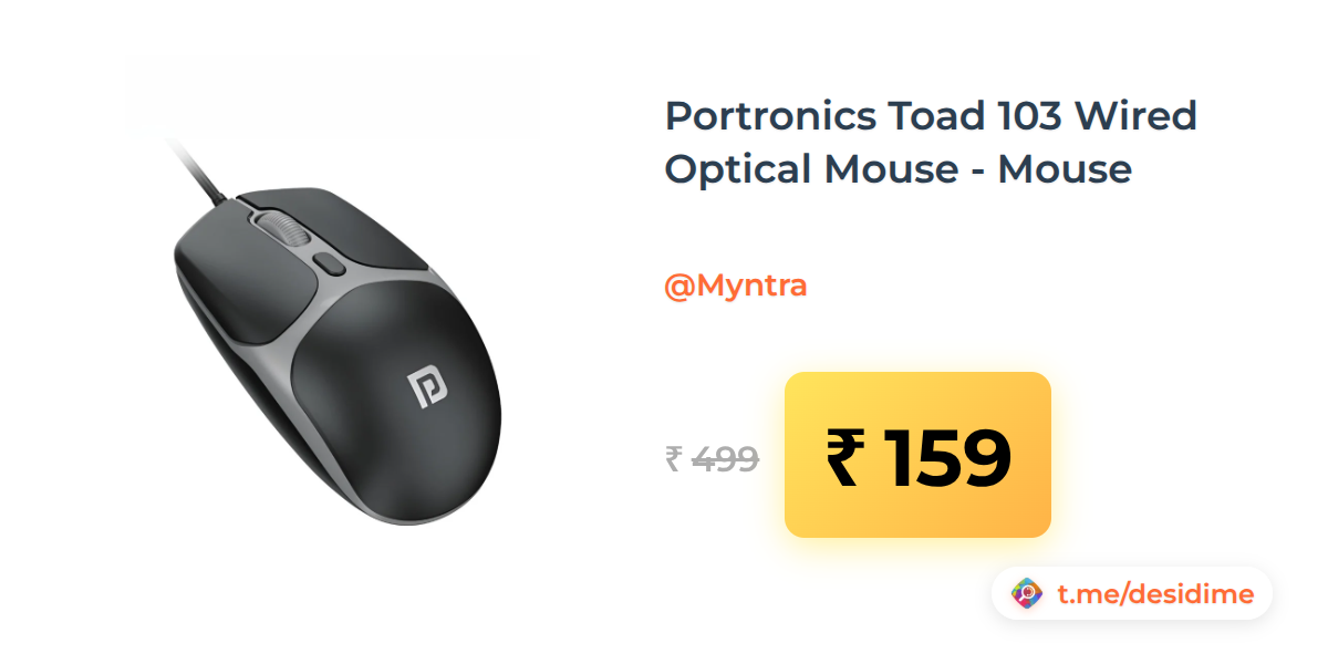 68% off on - Portronics Toad 103 Wired Optical Mouse - Mouse - Rs. 159