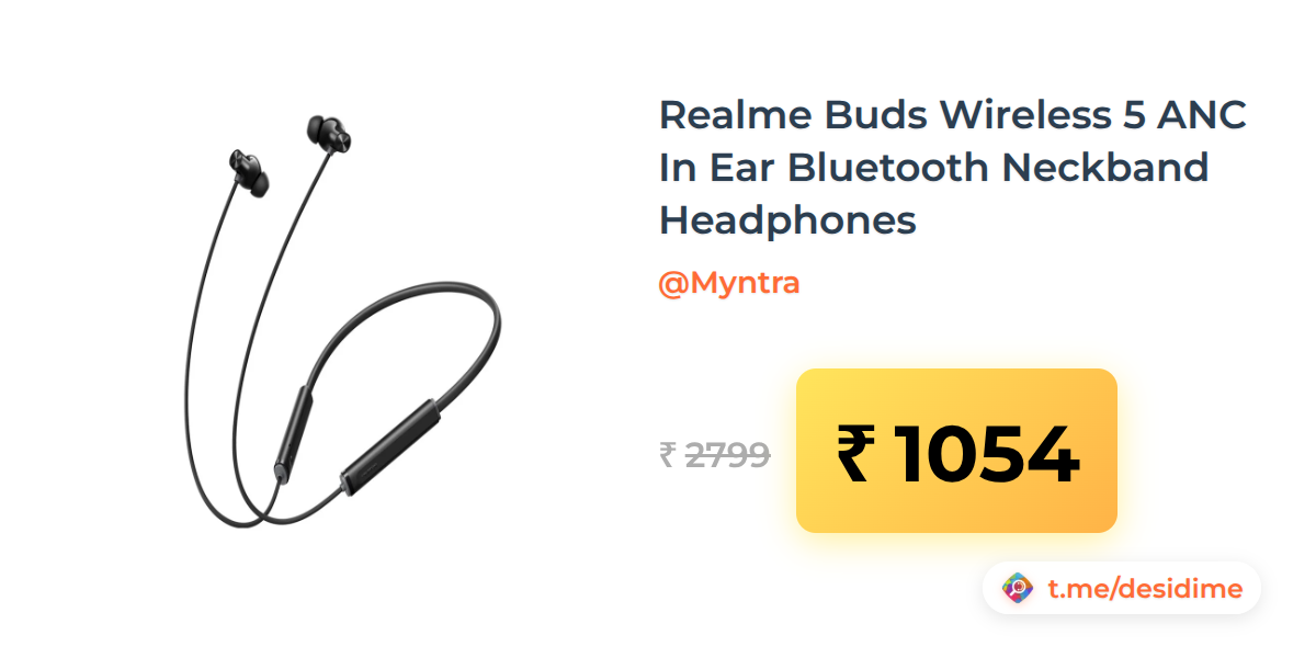62% off on - Realme Buds Wireless 5 ANC In Ear Bluetooth Neckband Headphones - Rs. 1054