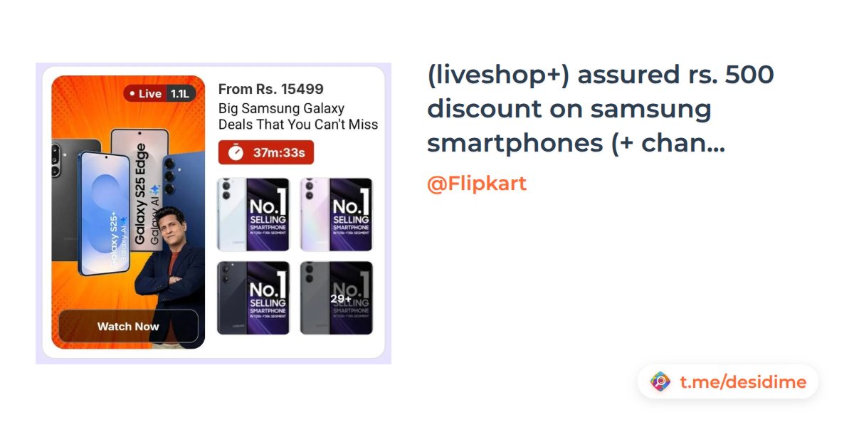 (liveshop+) assured rs. 500 discount on samsung smartphones (+ chance to win βΉ1500 off on those)