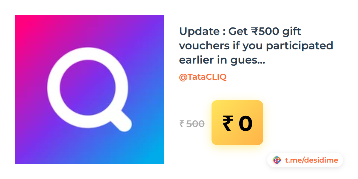 100% off on - Update : Get βΉ500 gift vouchers if you participated earlier in guess the price - Rs. 0