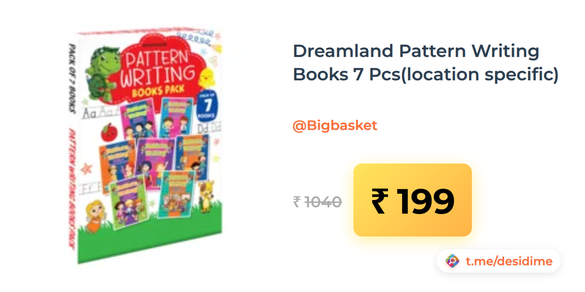 81% off on - Dreamland Pattern Writing Books 7 Pcs(location specific) - Rs. 199