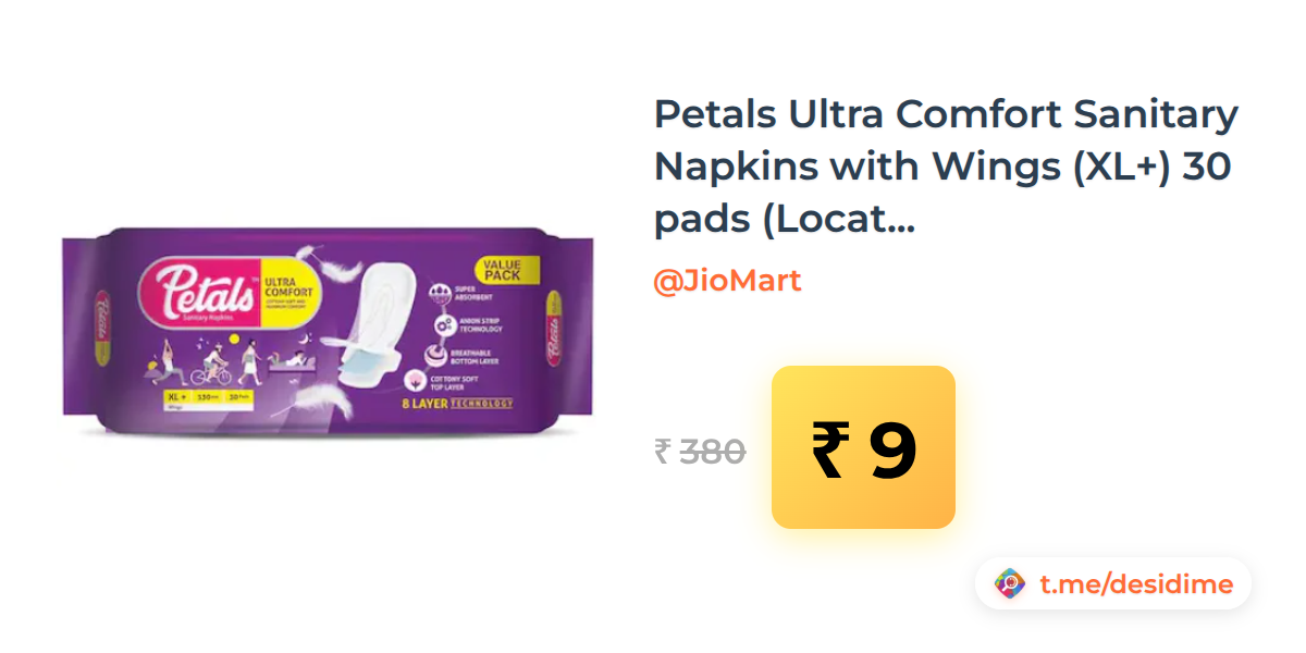 98% off on - Petals Ultra Comfort Sanitary Napkins with Wings (XL+) 30 pads (Location Specific) - Rs. 9