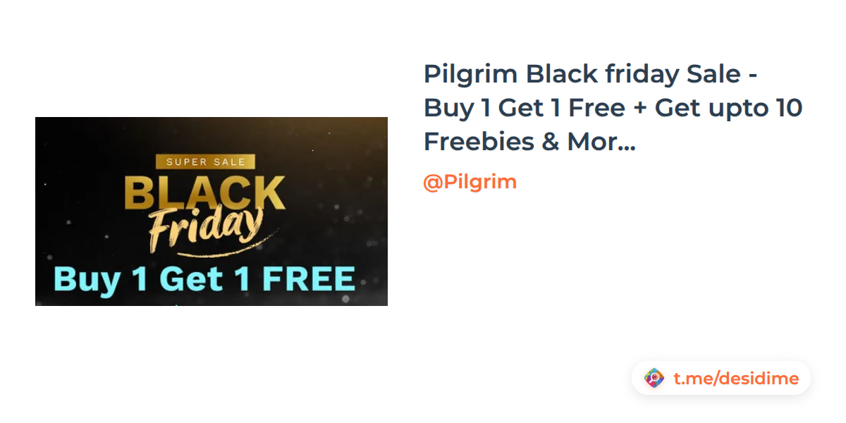 Pilgrim Black friday Sale - Buy 1 Get 1 Free + Get upto 10 Freebies & More offers
