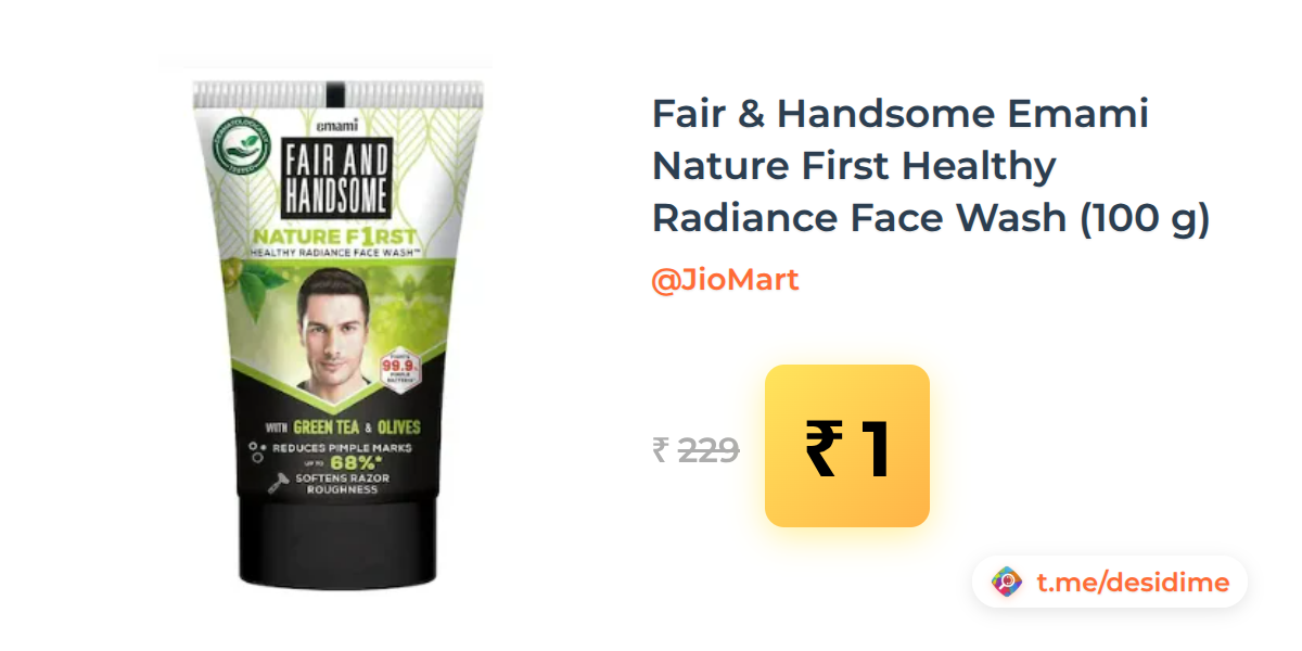 100% off on - Fair & Handsome Emami Nature First Healthy Radiance Face Wash (100 g) - Rs. 1