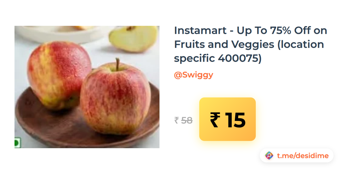 74% off on - Instamart - Up To 75% Off on Fruits and Veggies (location specific 400075) - Rs. 15