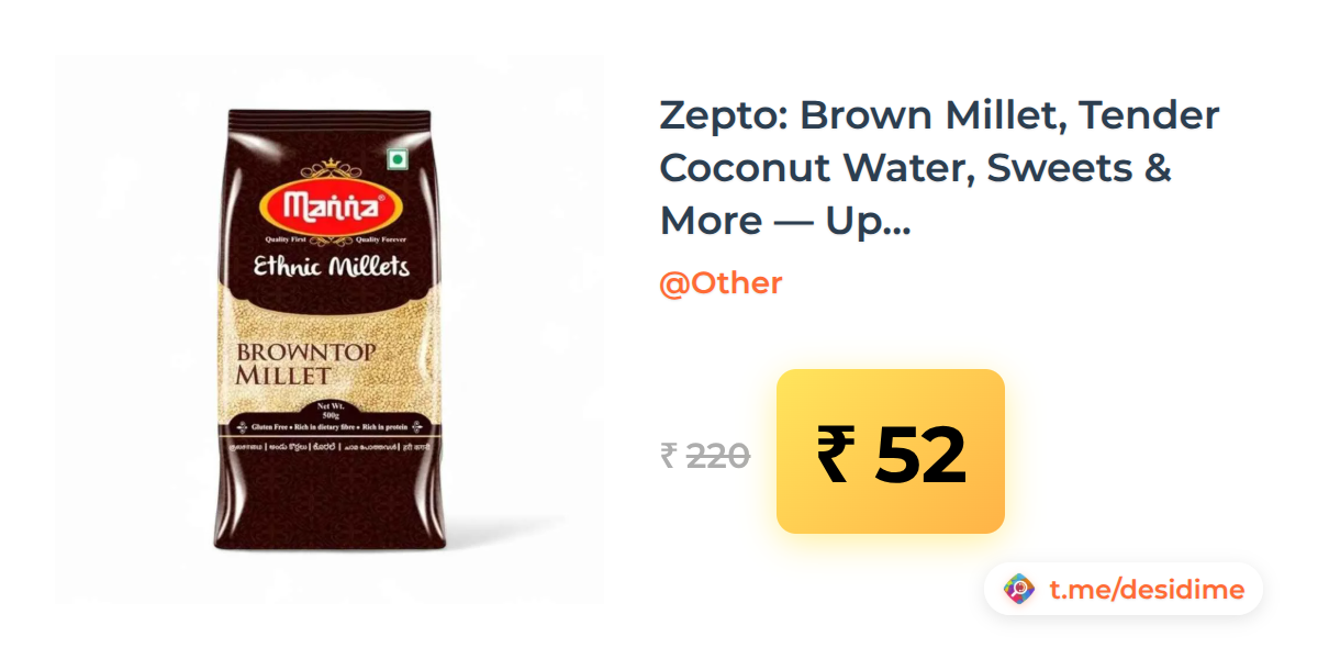 76% off on - Zepto: Brown Millet, Tender Coconut Water, Sweets & More — Up to 76% Off - Rs. 52