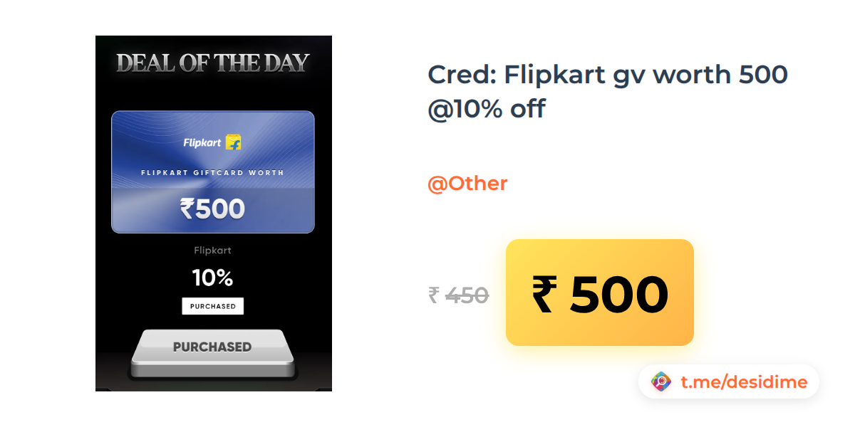 10% off on - Cred: Flipkart gv worth 500 @10% off - Rs. 500