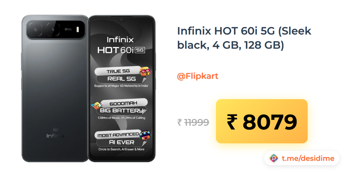 33% off on - Infinix HOT 60i 5G (Sleek black, 4 GB, 128 GB) - Rs. 8079