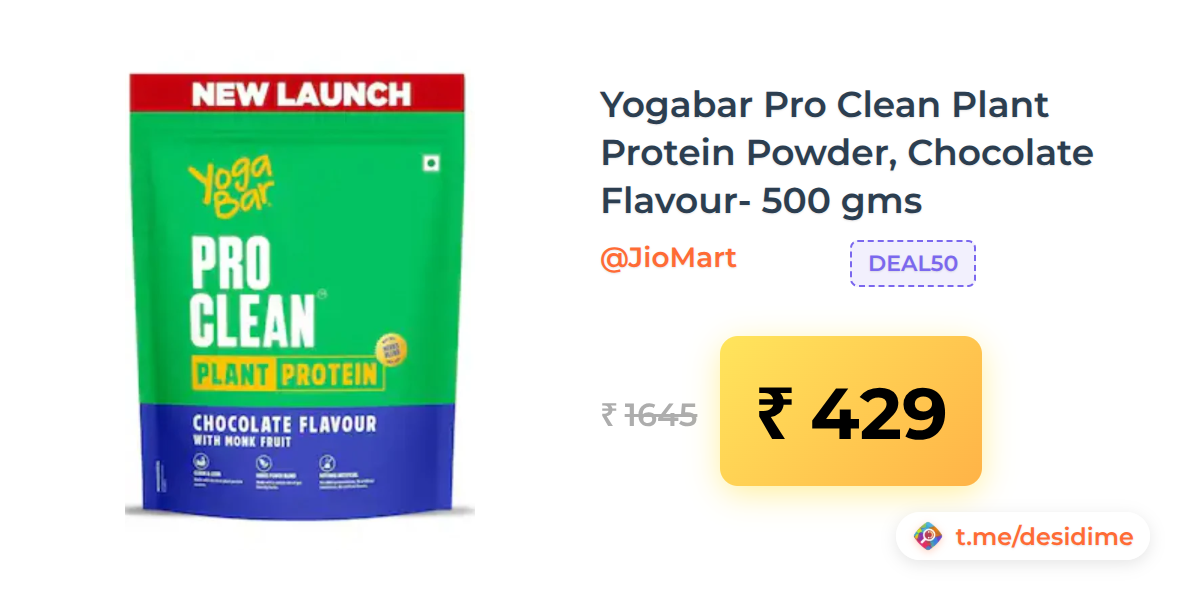 74% off on - Yogabar Pro Clean Plant Protein Powder, Chocolate Flavour- 500 gms - Rs. 429