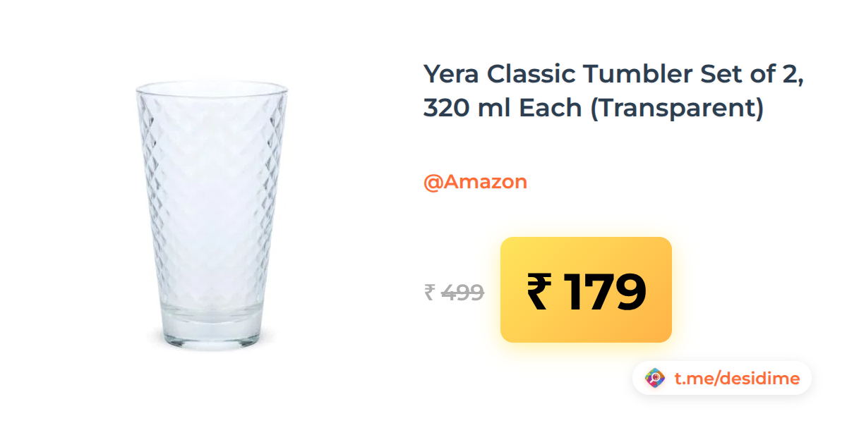64% off on - Yera Classic Tumbler Set of 2, 320 ml Each (Transparent) - Rs. 179