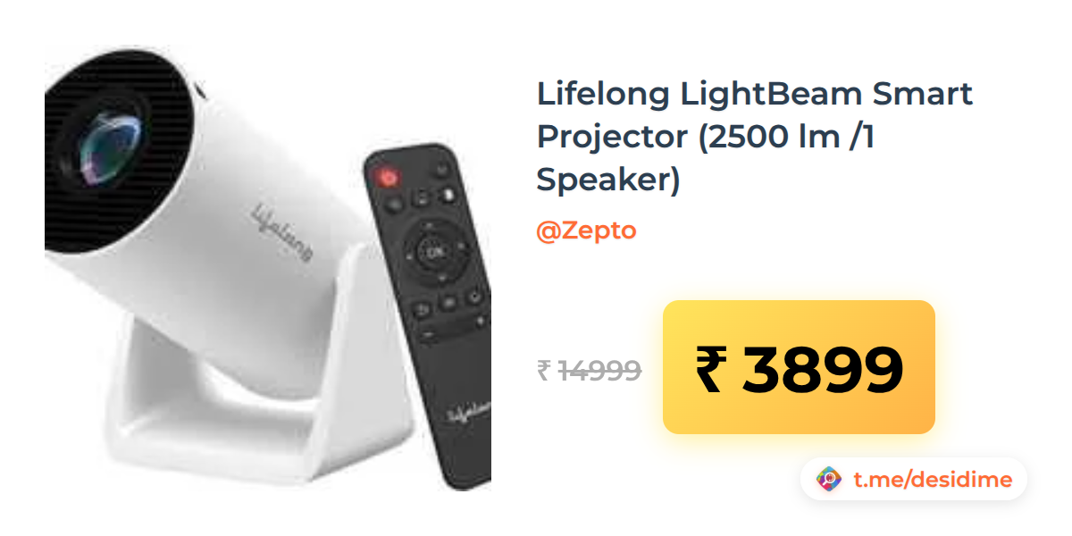 74% off on - Lifelong LightBeam Smart Projector (2500 lm /1 Speaker) - Rs. 3899