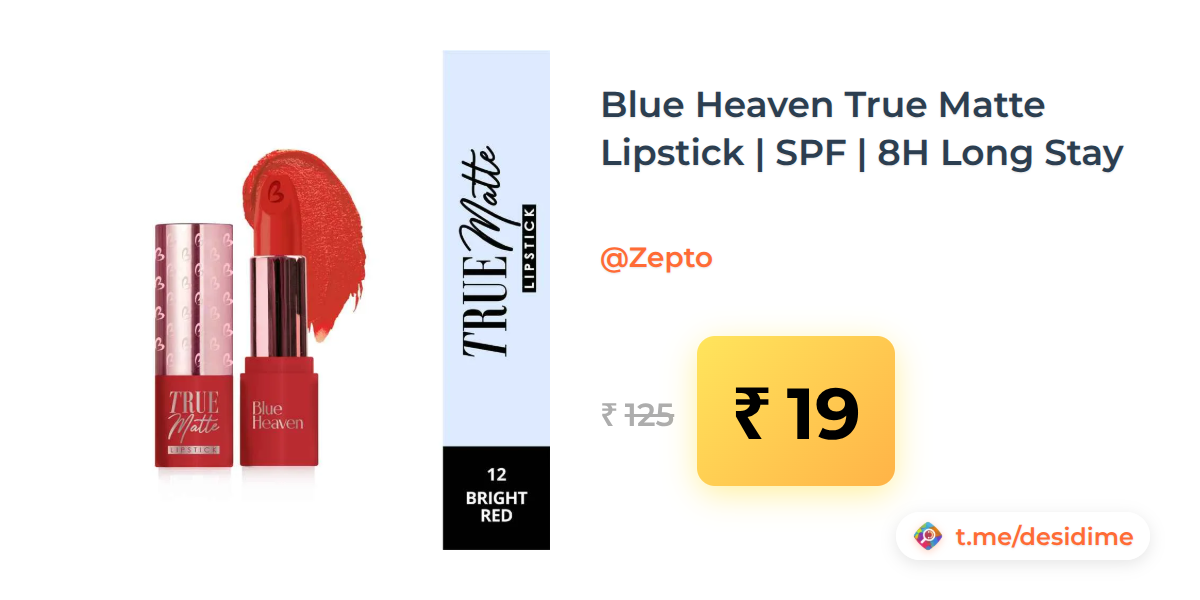 85% off on - Blue Heaven True Matte Lipstick | SPF | 8H Long Stay - Rs. 19