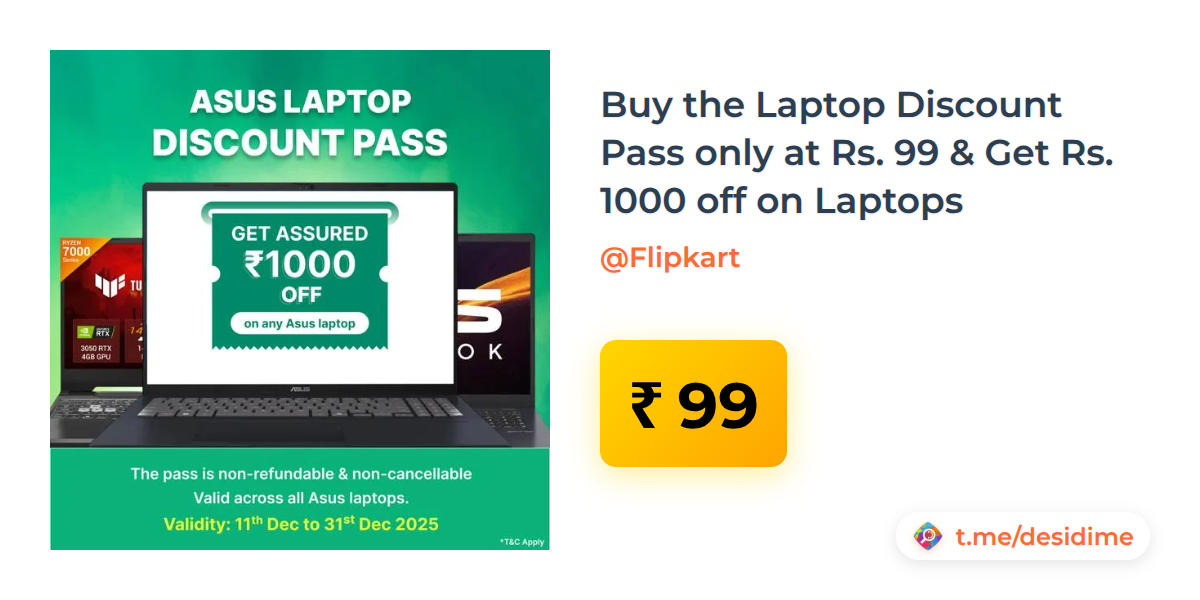 Buy the Laptop Discount Pass only at Rs. 99 & Get Rs. 1000 off on Laptops - Rs. 99