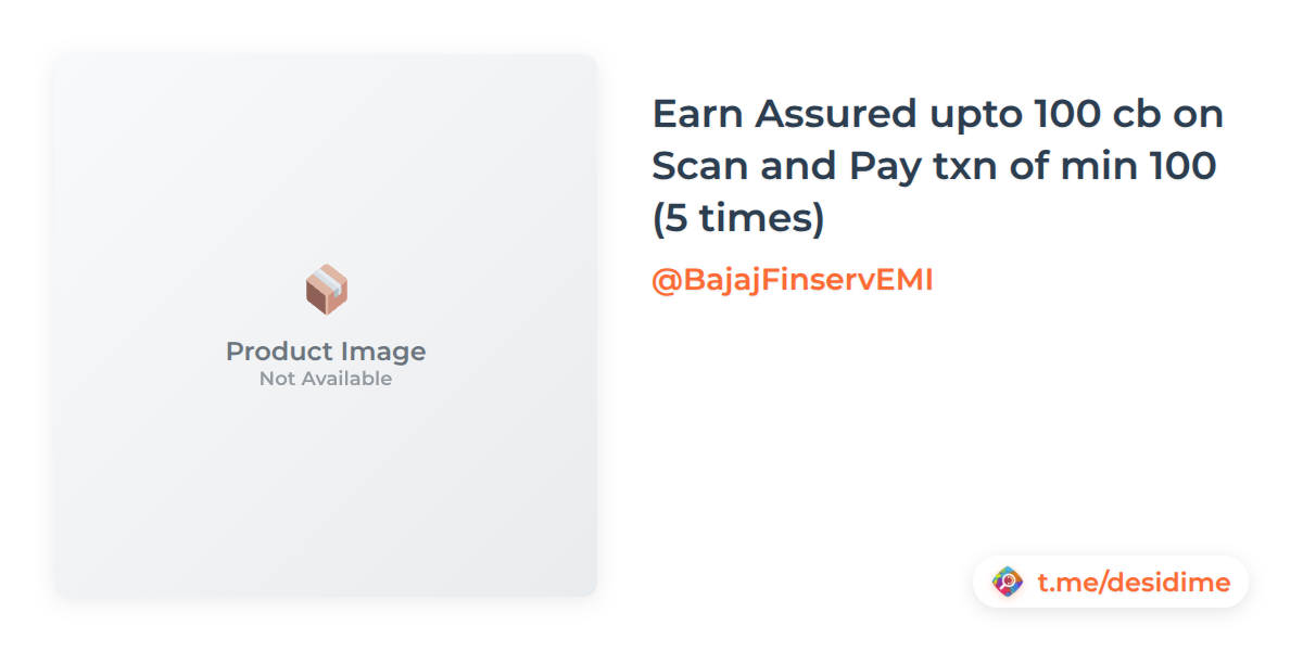 🌡421° - Bajaj Finserv Earn Assured upto 100 cb on Scan and Pay txn of min 100 (5 times)