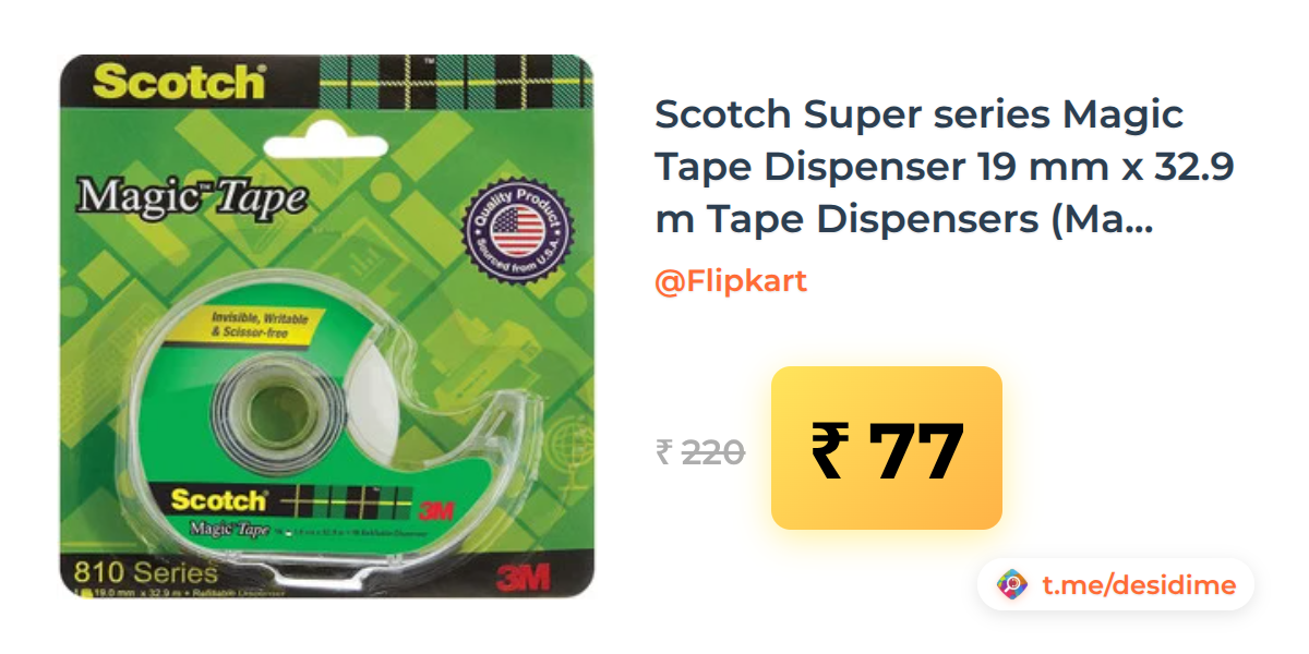 65% off on - Scotch Super series Magic Tape Dispenser 19 mm x 32.9 m Tape Dispensers (Manual) (Set of 1, Transparent) - Rs. 77