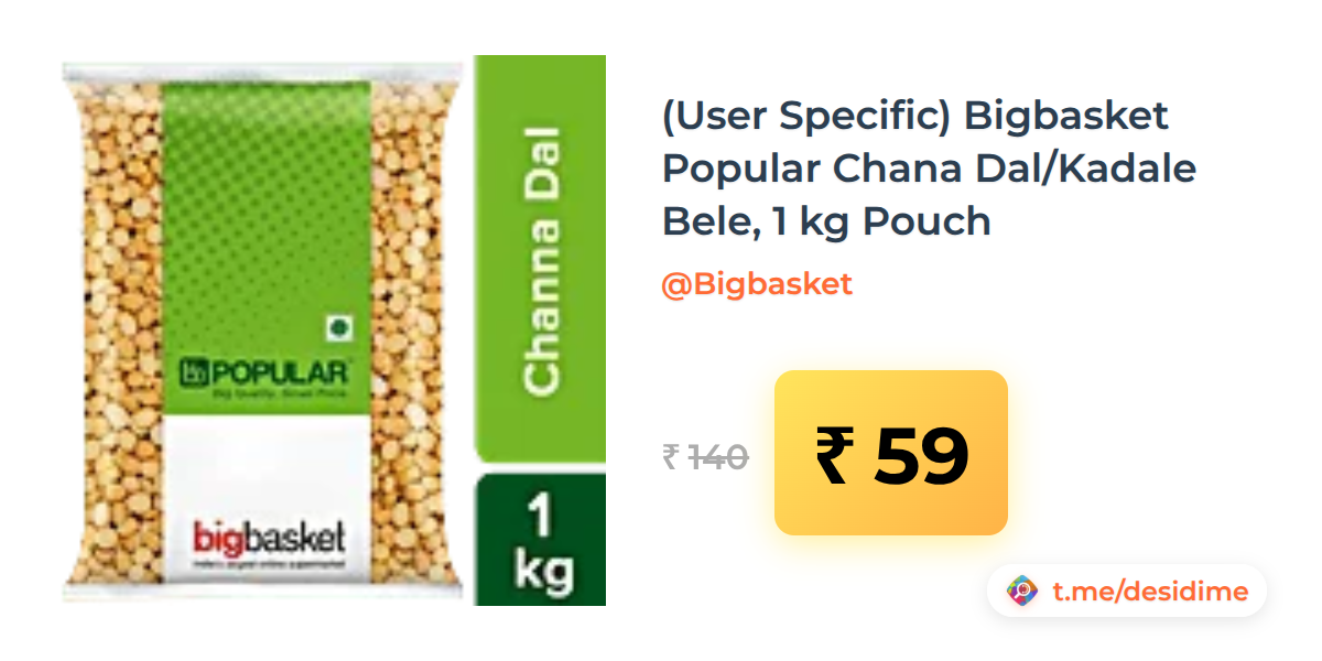 58% off on - (User Specific) Bigbasket Popular Chana Dal/Kadale Bele, 1 kg Pouch - Rs. 59