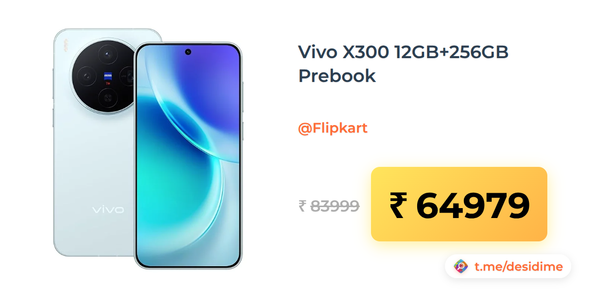 23% off on - Vivo X300 12GB+256GB Prebook - Rs. 64979