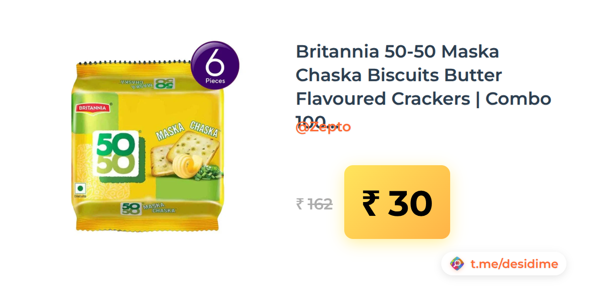 81% off on - Britannia 50-50 Maska Chaska Biscuits Butter Flavoured Crackers | Combo 100g*6 - Rs. 30