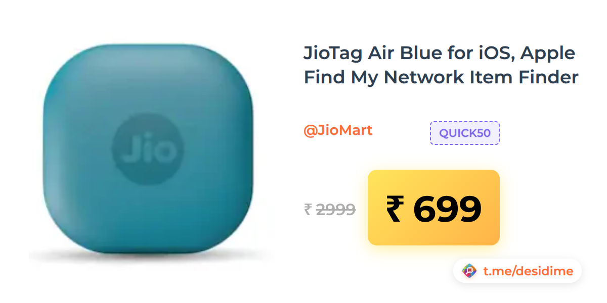 77% off on - JioTag Air Blue for iOS, Apple Find My Network Item Finder - Rs. 699