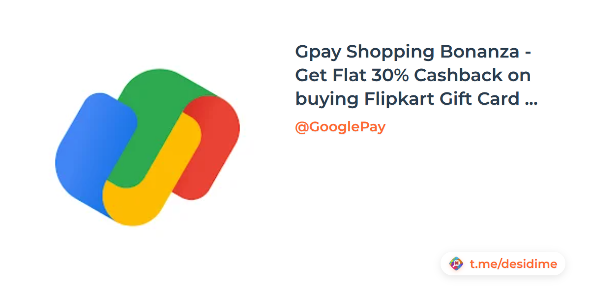 🌡1007° - Gpay Shopping Bonanza - Get Flat 30% Cashback on buying Flipkart Gift Card worth 250+