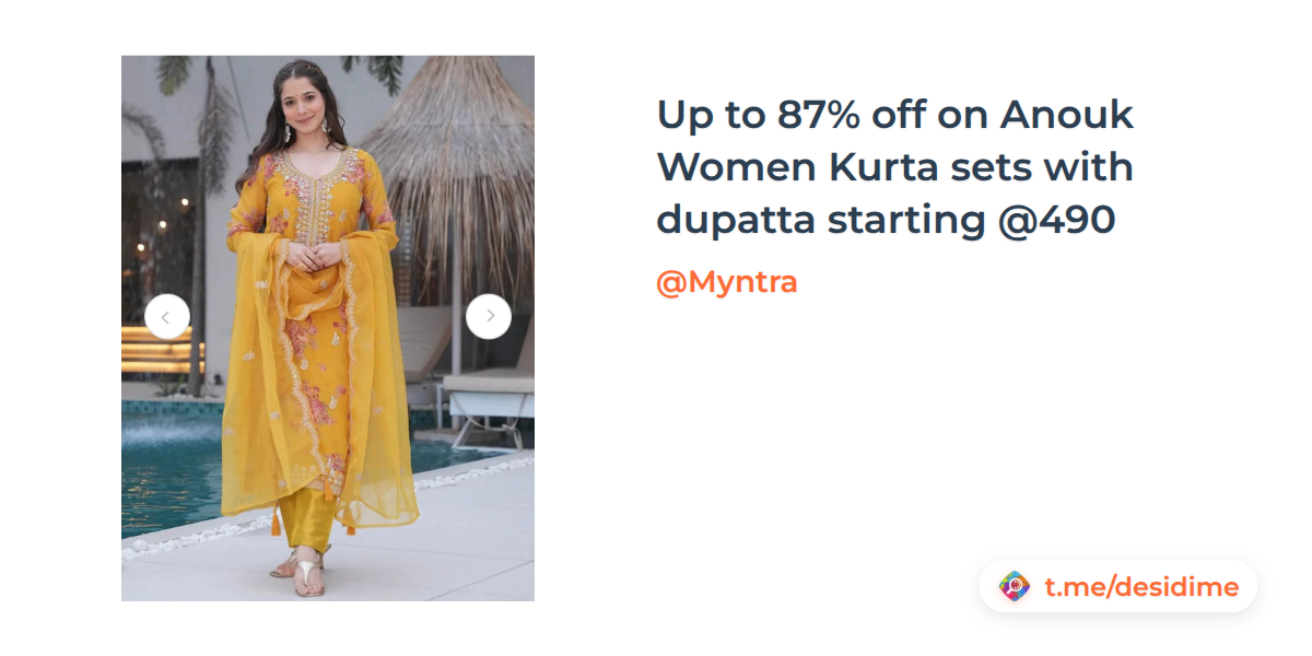 🌡345° - Up to 87% off on Anouk Women Kurta sets with dupatta starting @490