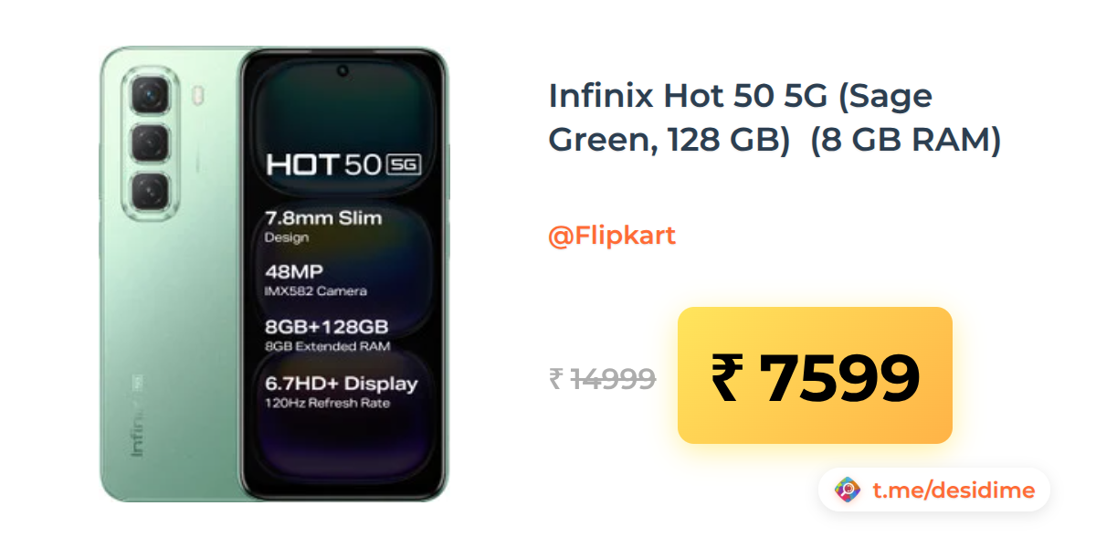 🌡299° - Infinix Hot 50 5G (Sage Green, 128 GB) (8 GB RAM) - Rs. 7599