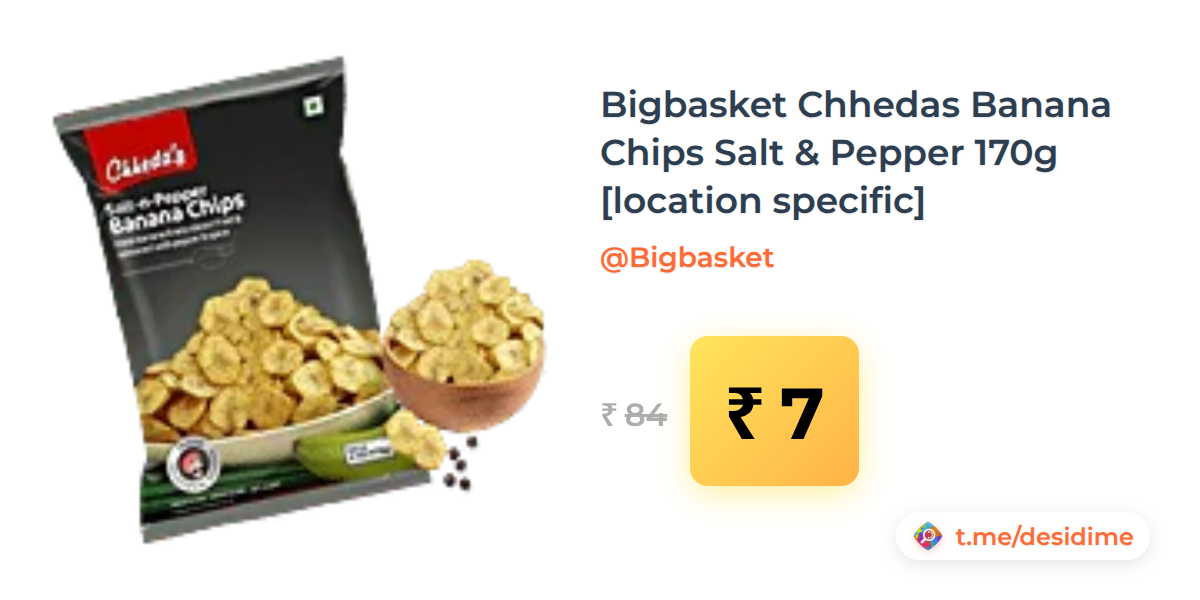 92% off on - Bigbasket Chhedas Banana Chips Salt & Pepper 170g [location specific] - Rs. 7
