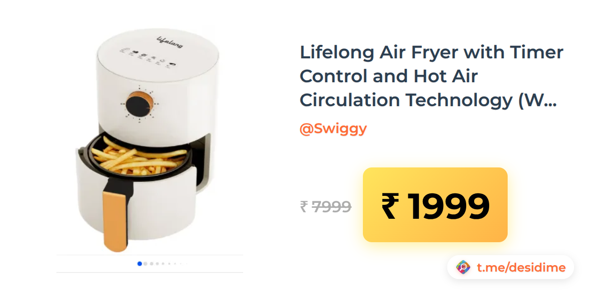 75% off on - Lifelong Air Fryer with Timer Control and Hot Air Circulation Technology (White) on Instamart - Rs. 1999