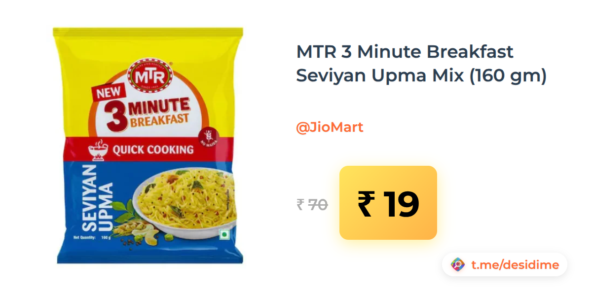 73% off on - MTR 3 Minute Breakfast Seviyan Upma Mix (160 gm) - Rs. 19