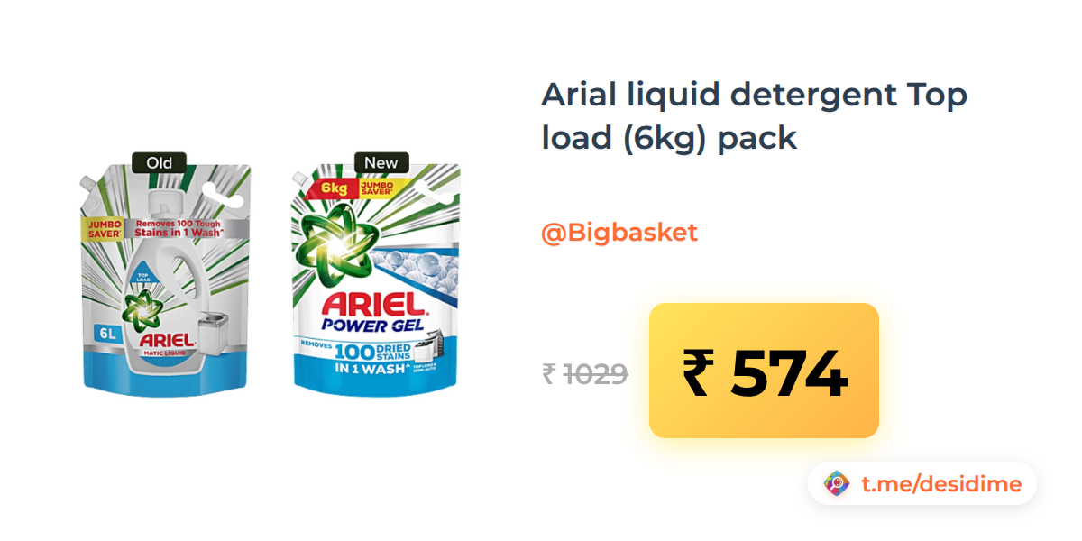 44% off on - Arial liquid detergent Top load (6kg) pack - Rs. 574