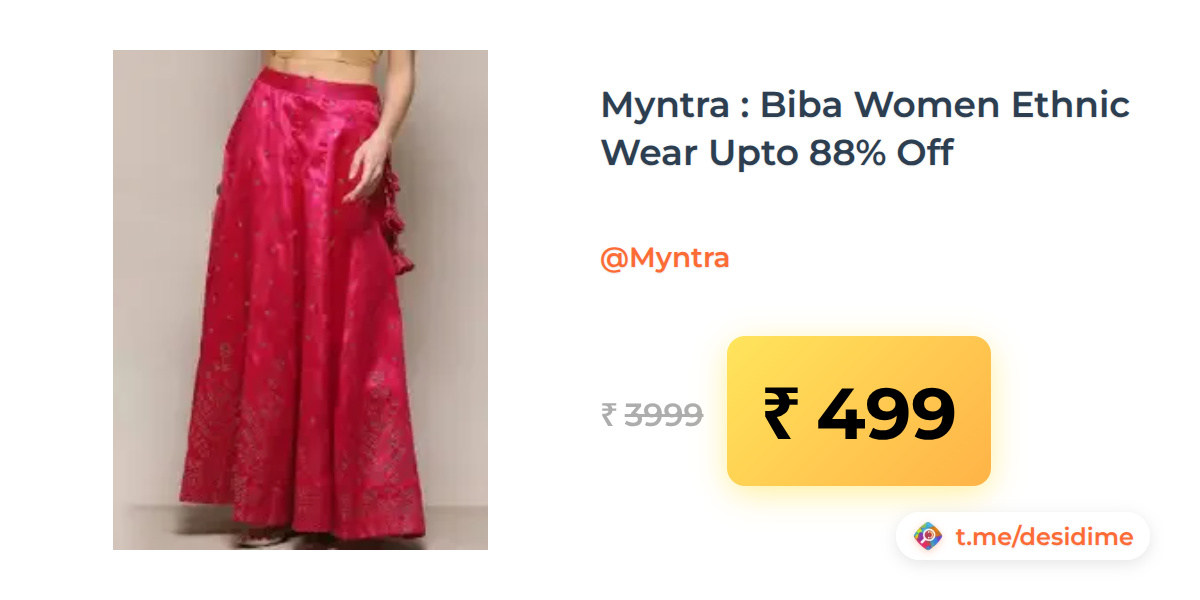 88% off on - Myntra : Biba Women Ethnic Wear Upto 88% Off - Rs. 499