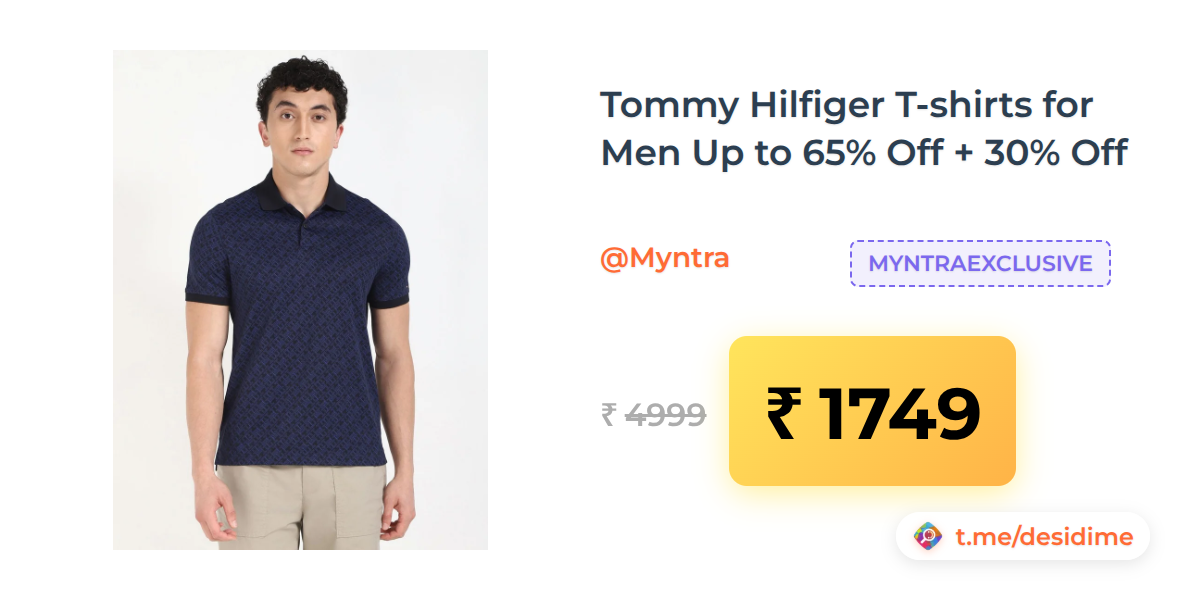 65% off on - Tommy Hilfiger T-shirts for Men Up to 65% Off + 30% Off - Rs. 1749
